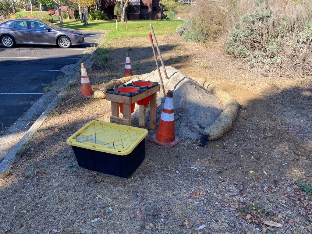 Caltrans continues work on Tiburon Boulevard to repair the damaged storm drain at the Tiburon Boulevard & Stewart Drive crosswalk. The work is weather dependent, so it will likely continue through the next two weeks.