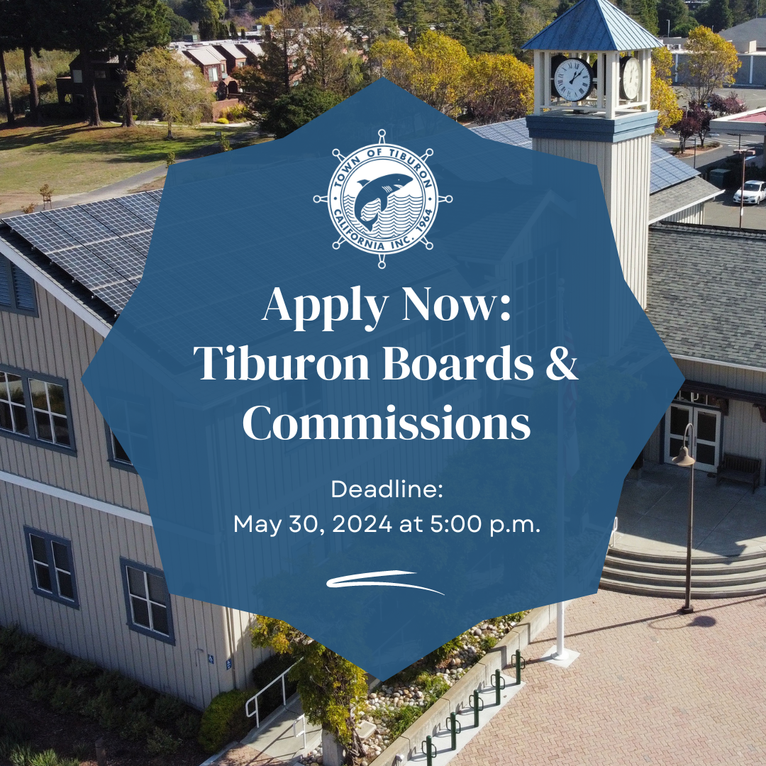 The Town of Tiburon is now accepting applications for a variety of volunteer positions on Town Council-appointed boards and commissions, as outlined below. Applicants should have the time, interest and desire to serve on the board or commission, including attendance at regular monthly meetings and other activities.