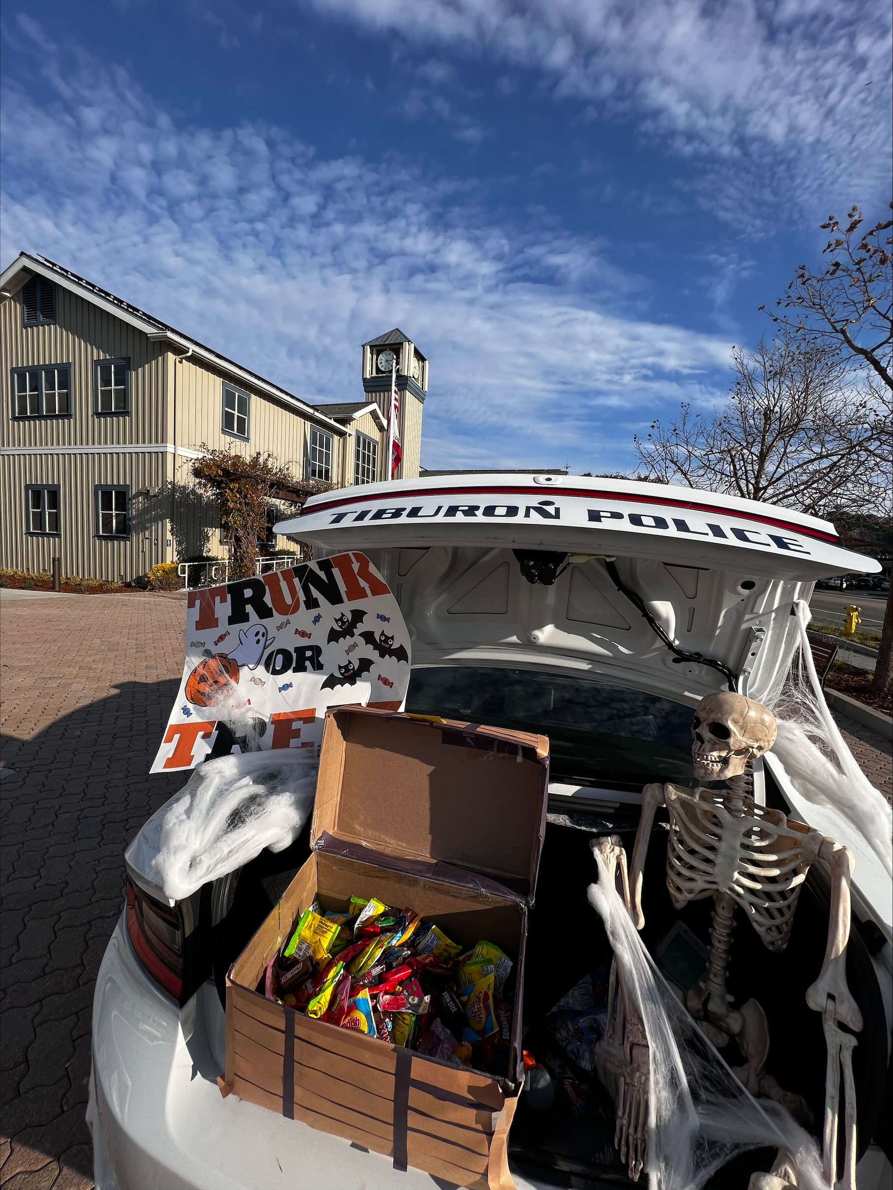 Happy Halloween from Tiburon PD! Come say hello, show off your cool costumes, and celebrate trunk-or-treat with Tiburon Police. Officers will be giving out candy in the following locations on Halloween evening: