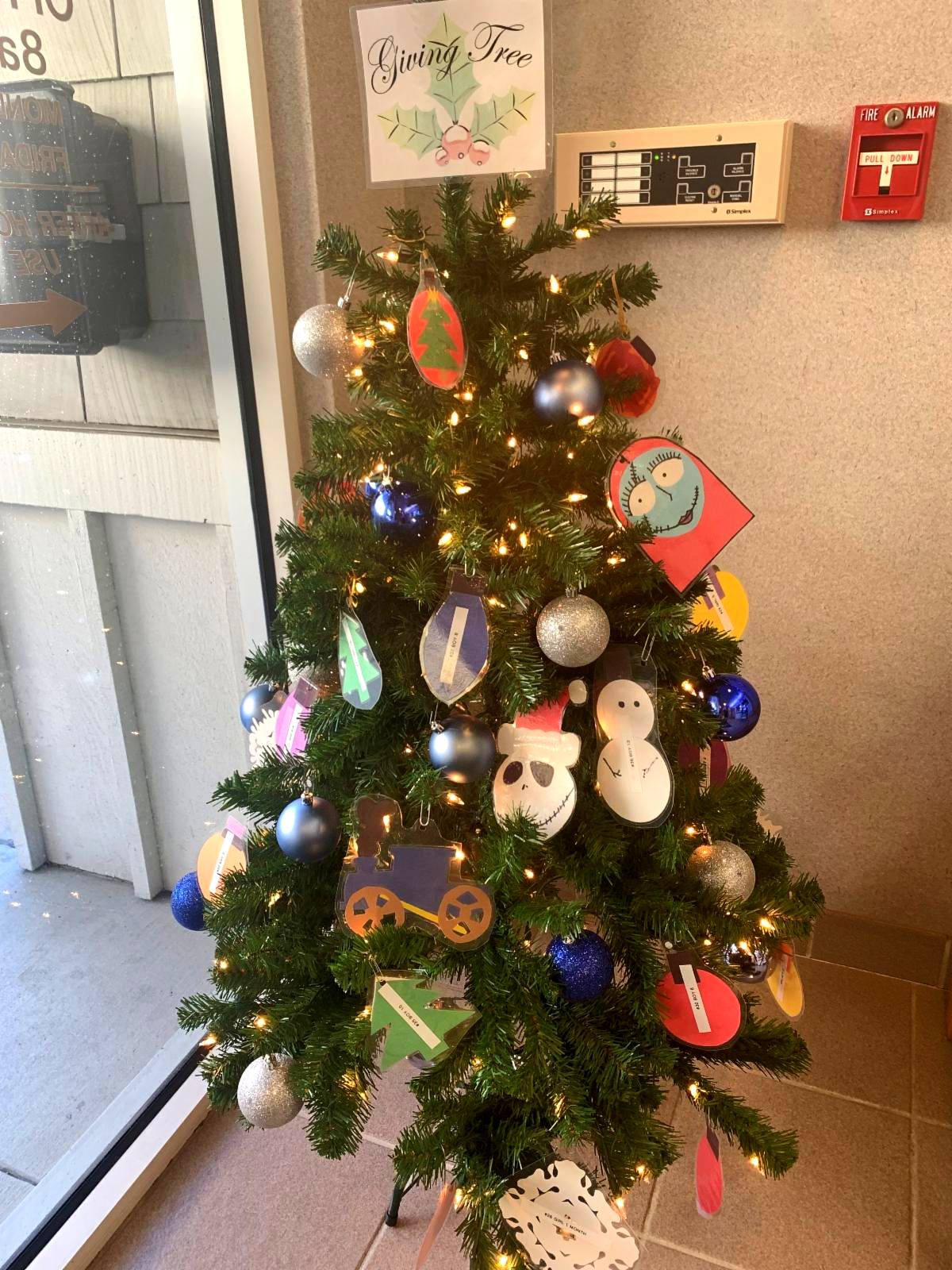The annual Giving Tree is up at the Tiburon Police Station, decorated with ornaments representing the gift wishes of children from local families who could use a little extra help making this holiday season special.