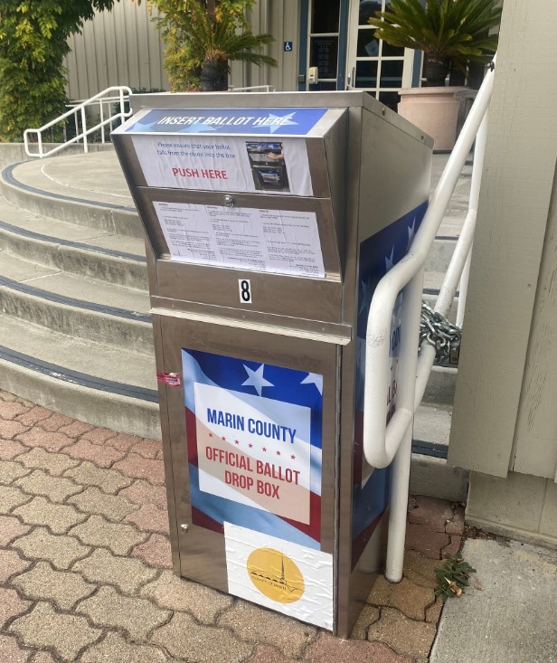 Ballots were mailed by the Marin County Elections Department last week. Voters may drop their ballots at the post office, in a post office mailbox, or in any Ballot Dropbox throughout the County.