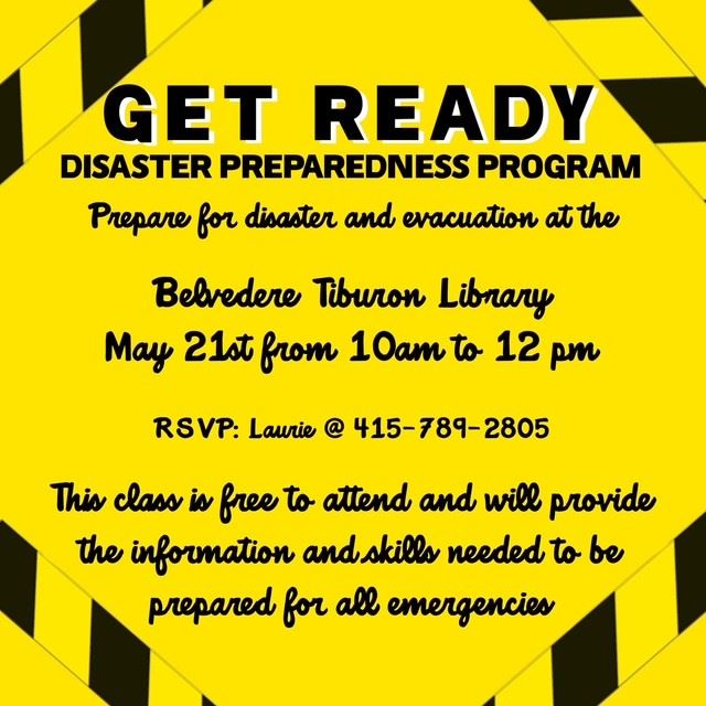 Tiburon Police, Ready Marin, and the Belvedere-Tiburon Library are partnering to host a series of free events to help you learn new skills, connect with your community, and feel prepared in case of emergency.