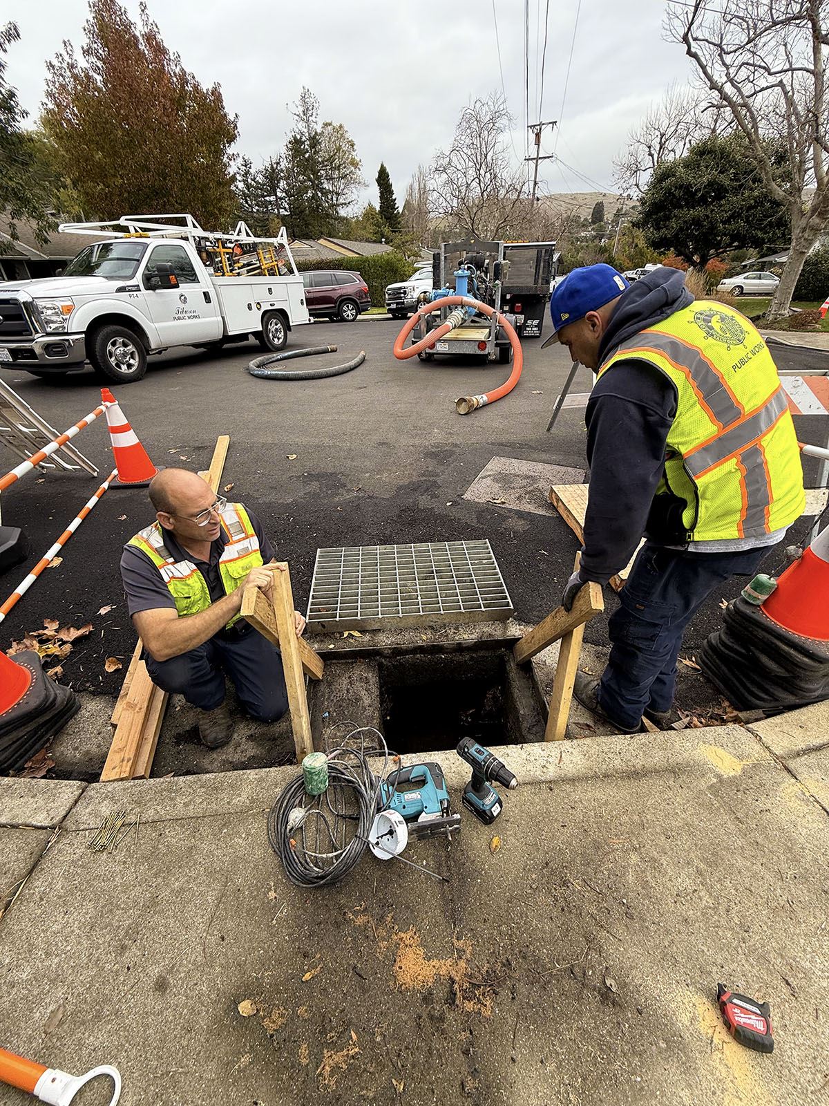 Starting in June 2025, the Town of Tiburon will begin a storm drain rehabilitation project to improve drainage on portions of Karen Way, Claire Way, and within the Bel Aire Play Area. The project also includes upgrades to street drainage in front of Bel Aire School. Work will involve trench excavation to replace aging storm drain pipes, followed by full street repaving in the affected areas. Construction is expected to last about 35 days.