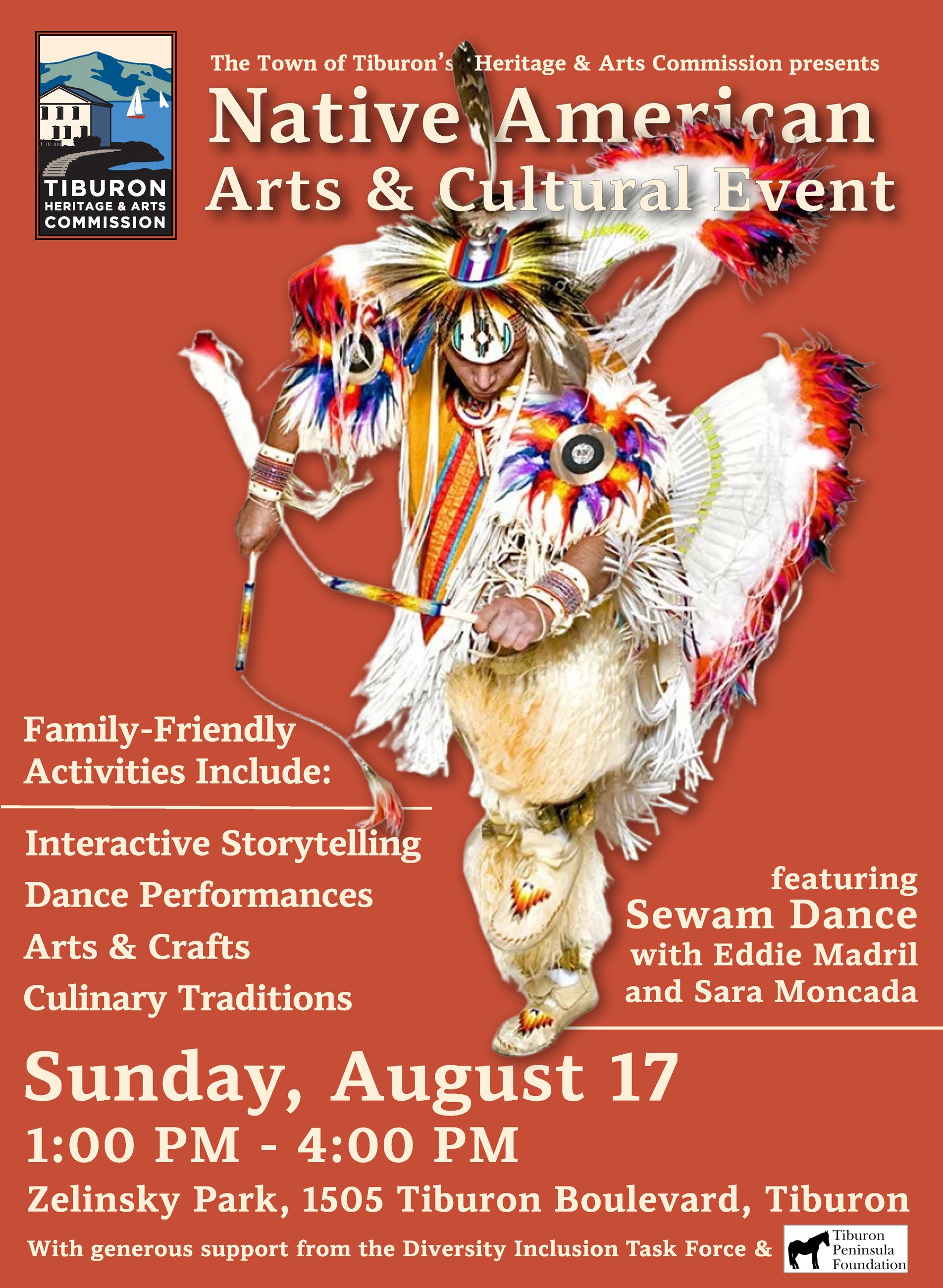 📸: Tiburon resident, Eddie Madril, dances at the inaugural Native American Arts & Culture event, hosted by the Heritage & Arts Commission and the Diversity Inclusion Task Force, at Zelinsky Park last summer.